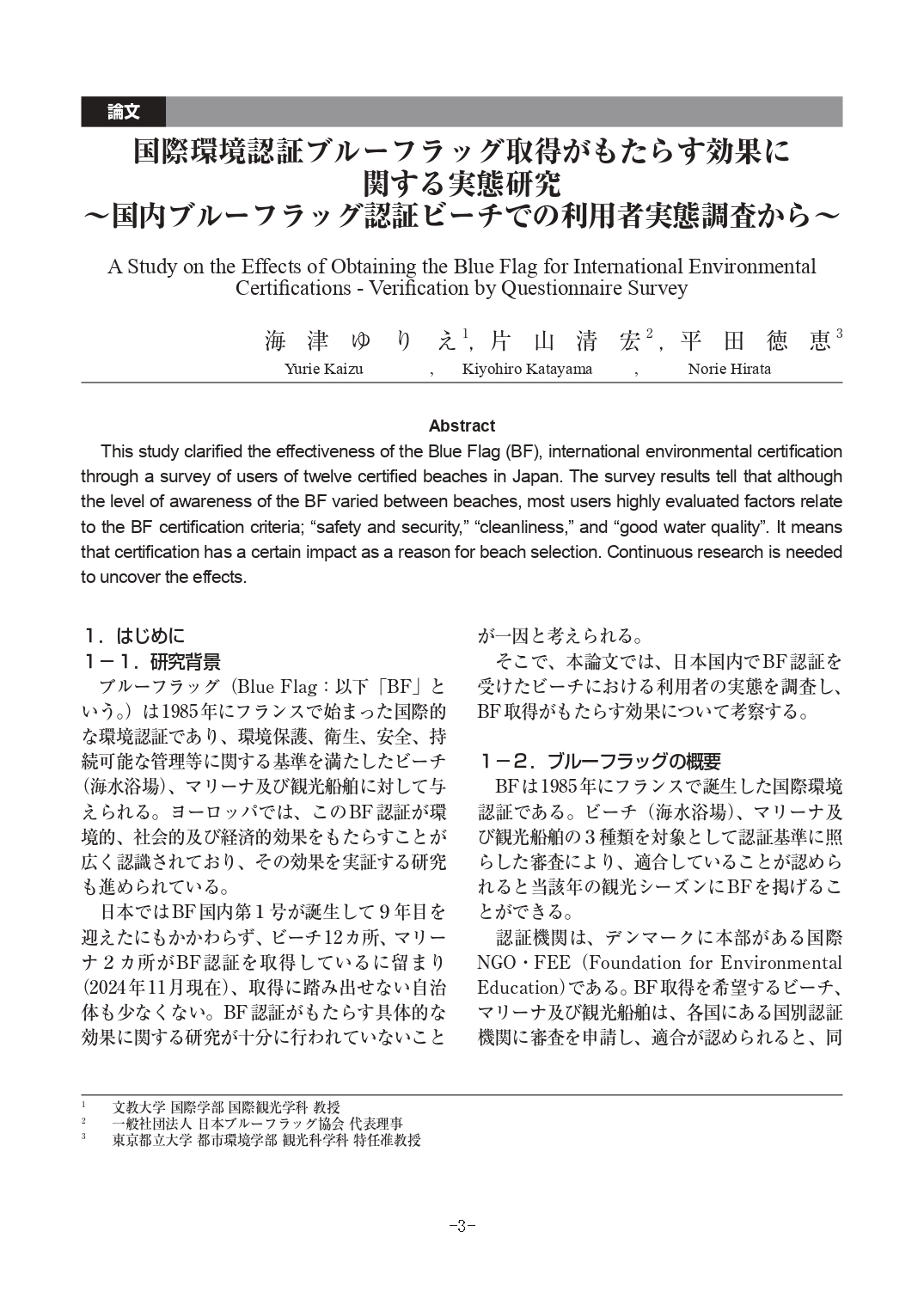 国際環境認証ブルーフラッグ取得がもたらす効果に関する実態研究