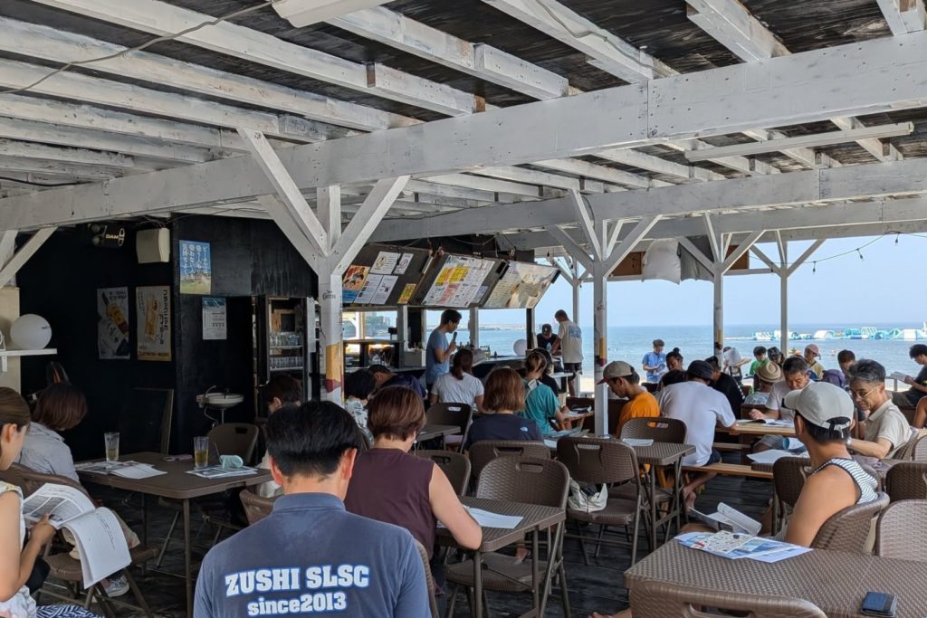 逗子海岸営業協同組合(理事長:菊池千春氏)のご協力のもと、逗子海水浴場の海の家を会場に、海水浴場関係者の他、近隣の市民、50名が参加しました。